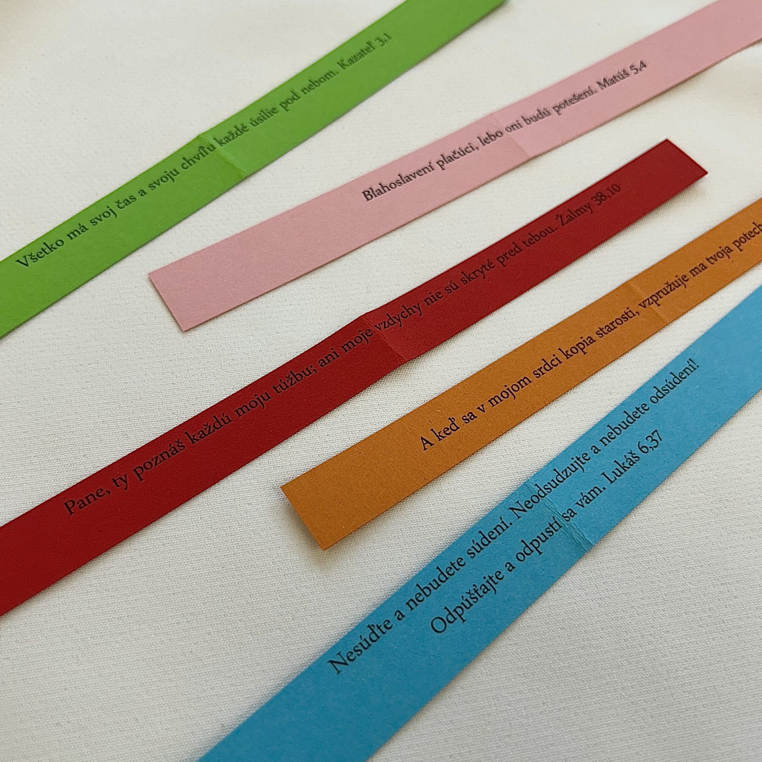 Sklíčko s citátmi obsahuje 100 veršov z Biblie k témam ako sú: strach, skúška, smútok, zranenie, hľadanie cesty, odpustenie, slabosť a osamelosť. Sú rána, kedy si Bibliu nestihneš otvoriť, a práve takýmto spôsobom sa ti môže aj v uponáhľané ráno Boh prihovoriť.