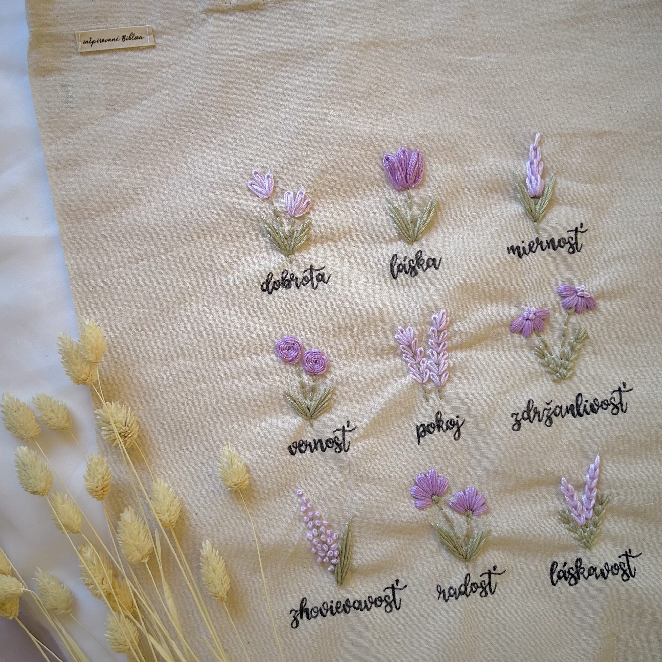 Vyšívaná taška ovocie Ducha – fialová